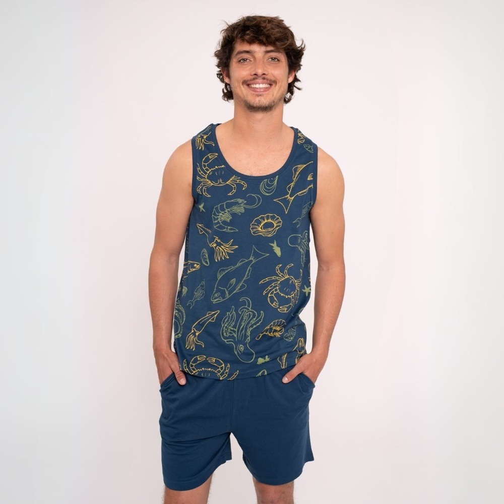 Muydemi Καλοκαιρινή Ανδρική Πιτζάμα Βαμβακερή Μπλε 310065