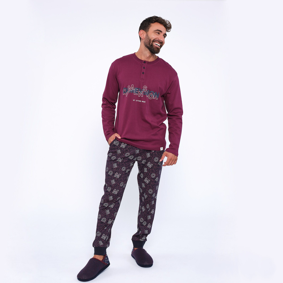 Muydemi Μπορντό/Μπλε Βαμβακερή Ανδρική Πιτζάμα Με Γράμματα.