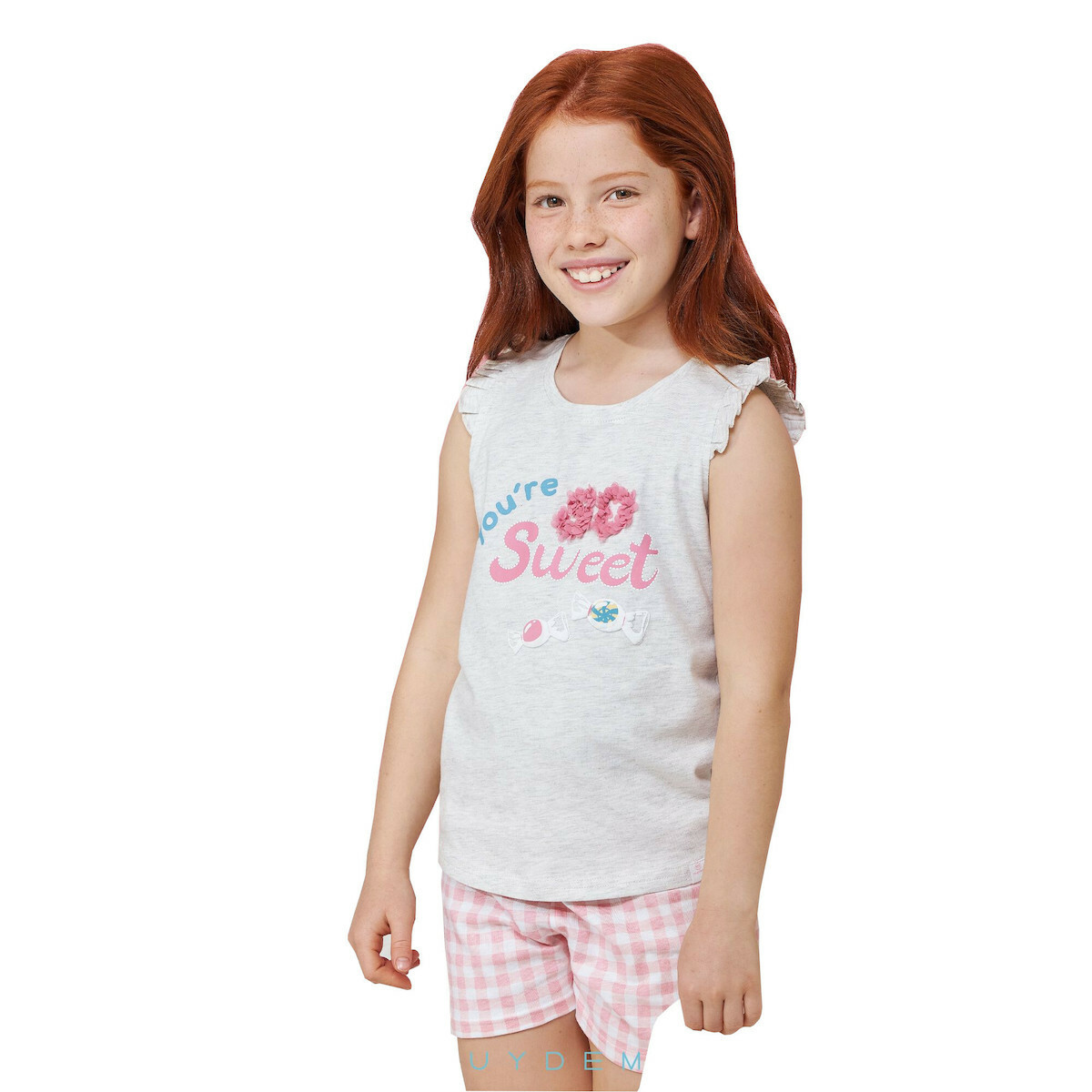 Muydemi βαμβακερή γκρι/ροζ παιδική πιτζάμα.