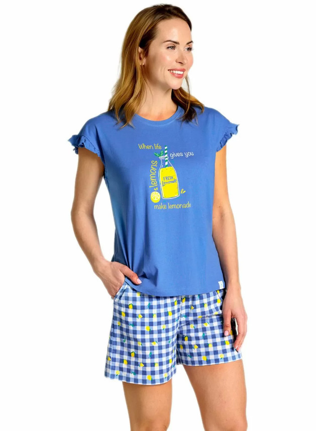 Muydemi Βαμβακερή Γυναικεία Πιτζάμα Μπλε Με Καρό Σορτς.