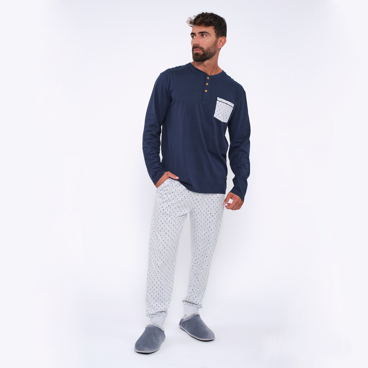 Muydemi Βαμβακερή Μπλε/Γκρι Ανδρική Πιτζάμα Με Σκάκι.