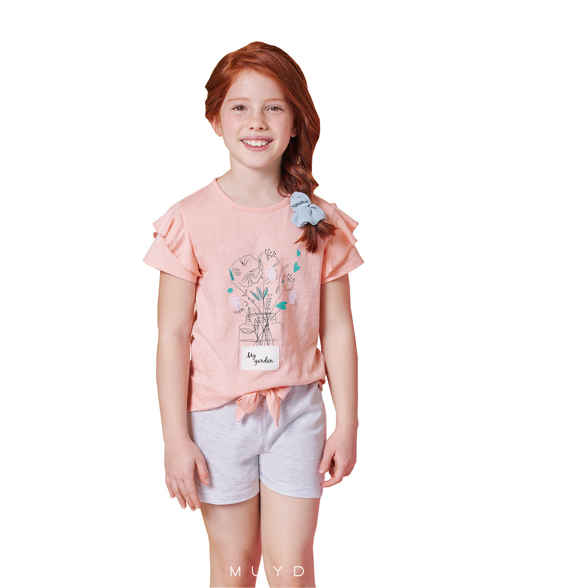 Muydemi βαμβακερή σομόν/γκρι παιδική πιτζάμα.