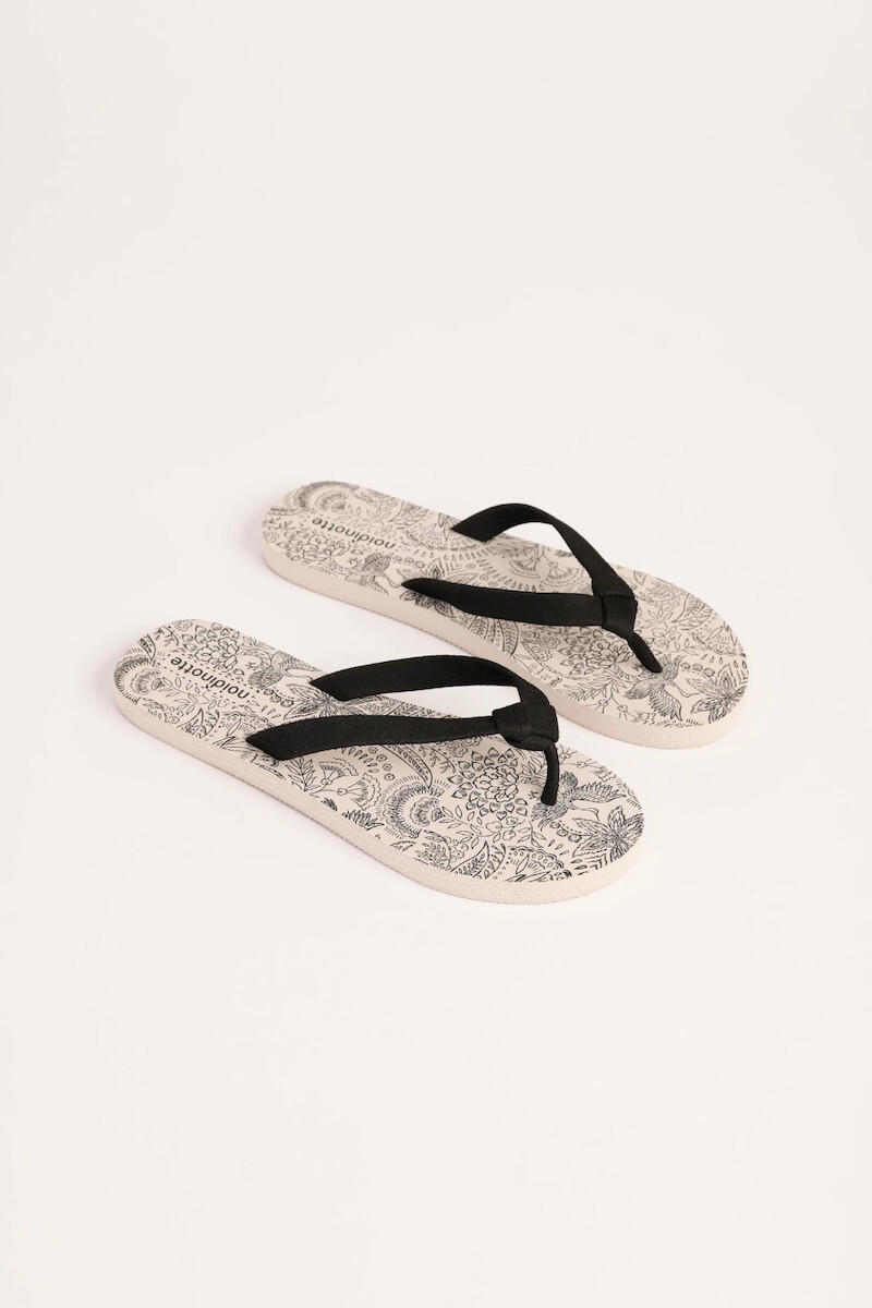 Noidinotte εκρού/μαύρες γυναικείες σαγιονάρες.