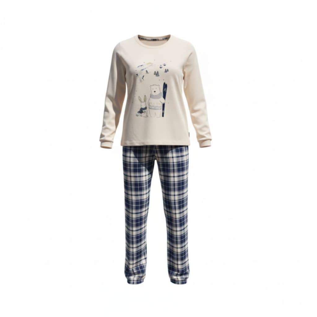 Noidinotte Εκρού/Μπλε Καρό Βαμβακερή Γυναικεία Πιτζάμα.