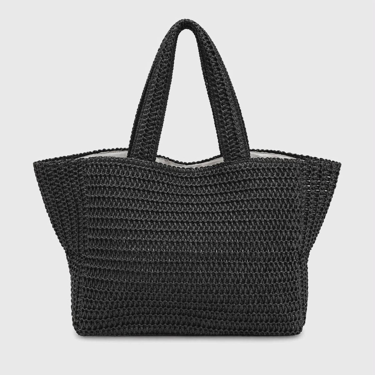 Noidinotte Μαύρη Πλεκτή Τσάντα Θαλάσσης Με Φερμουάρ 29X55X22.