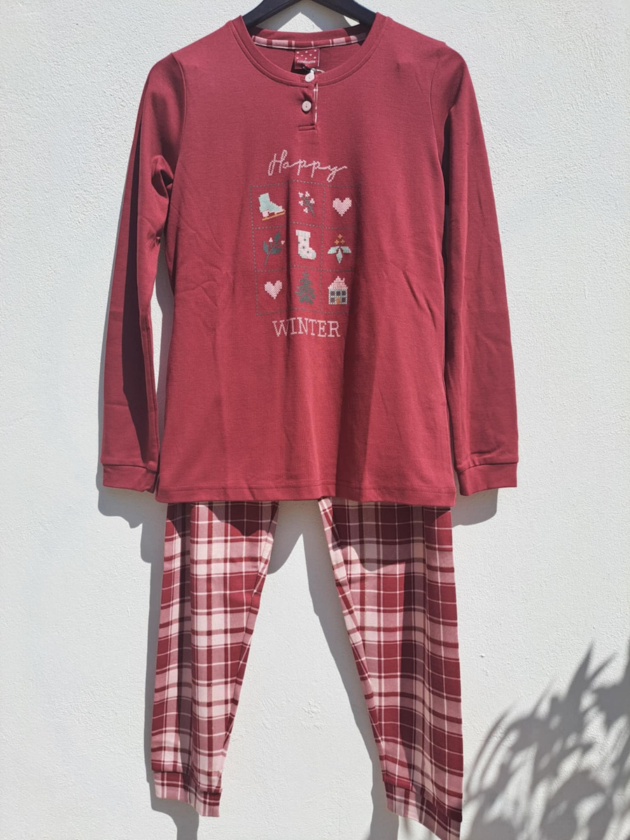 Noidinotte Μπορντό Καρό Βαμβακερή Γυναικεία Πιτζάμα.