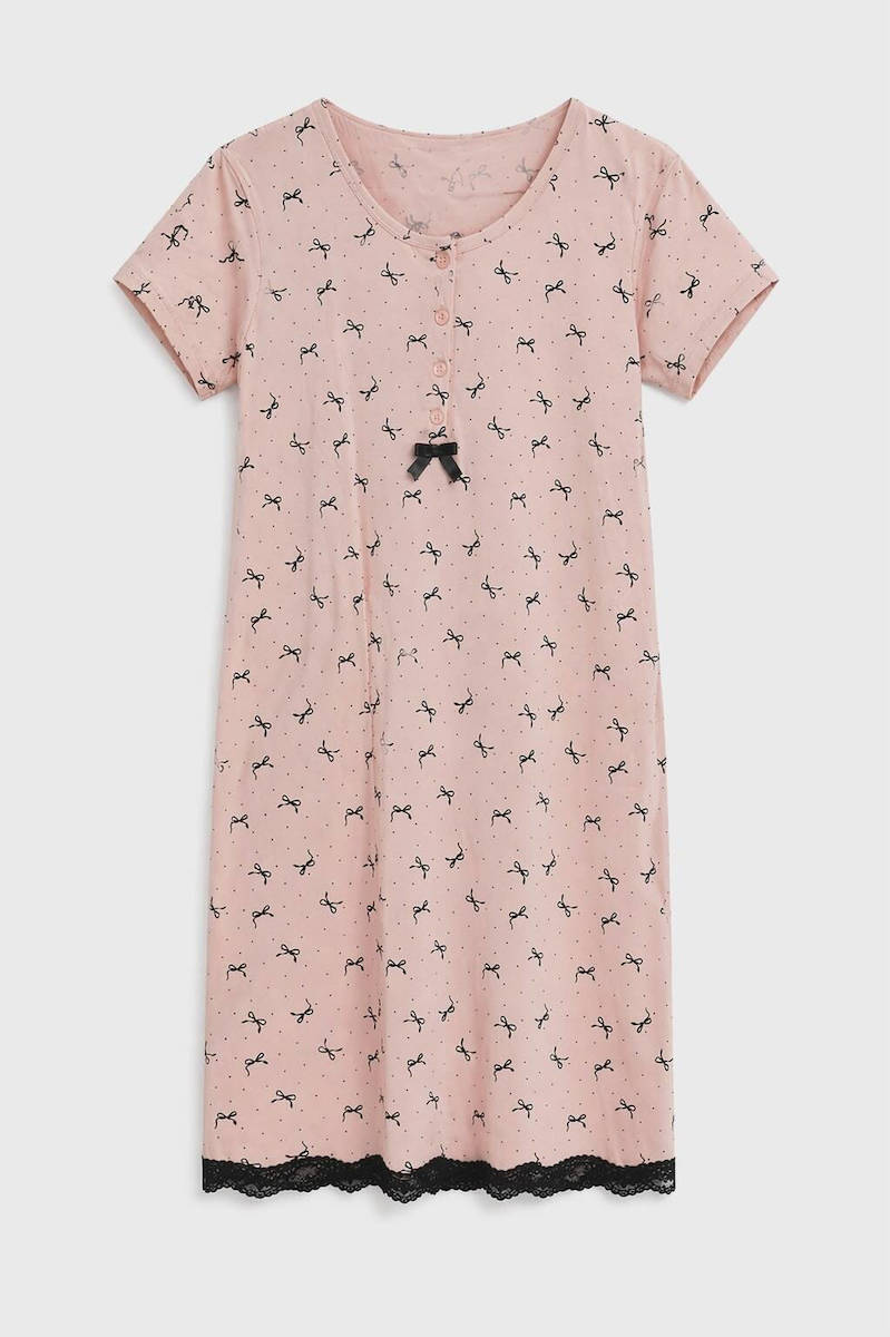 Noidinotte Ροζ Πουά Βαμβακερό Κοντομάνικο Γυναικείο Νυχτικό.