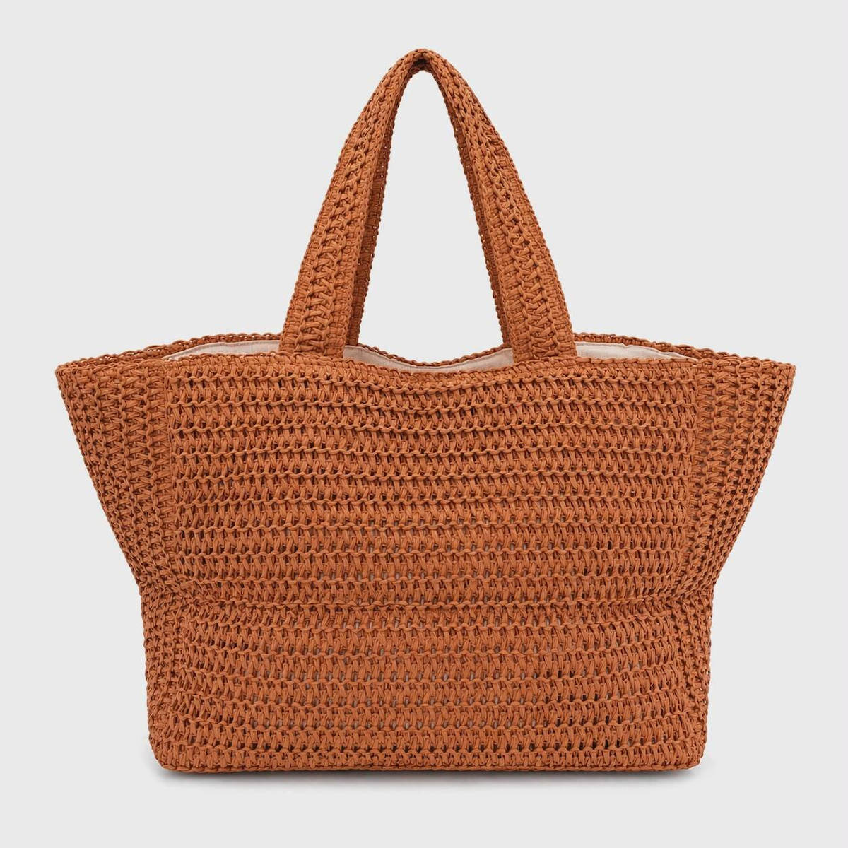 Noidinotte Τερακότα Πλεκτή Τσάντα Θαλάσσης Με Φερμουάρ 29X55X22.