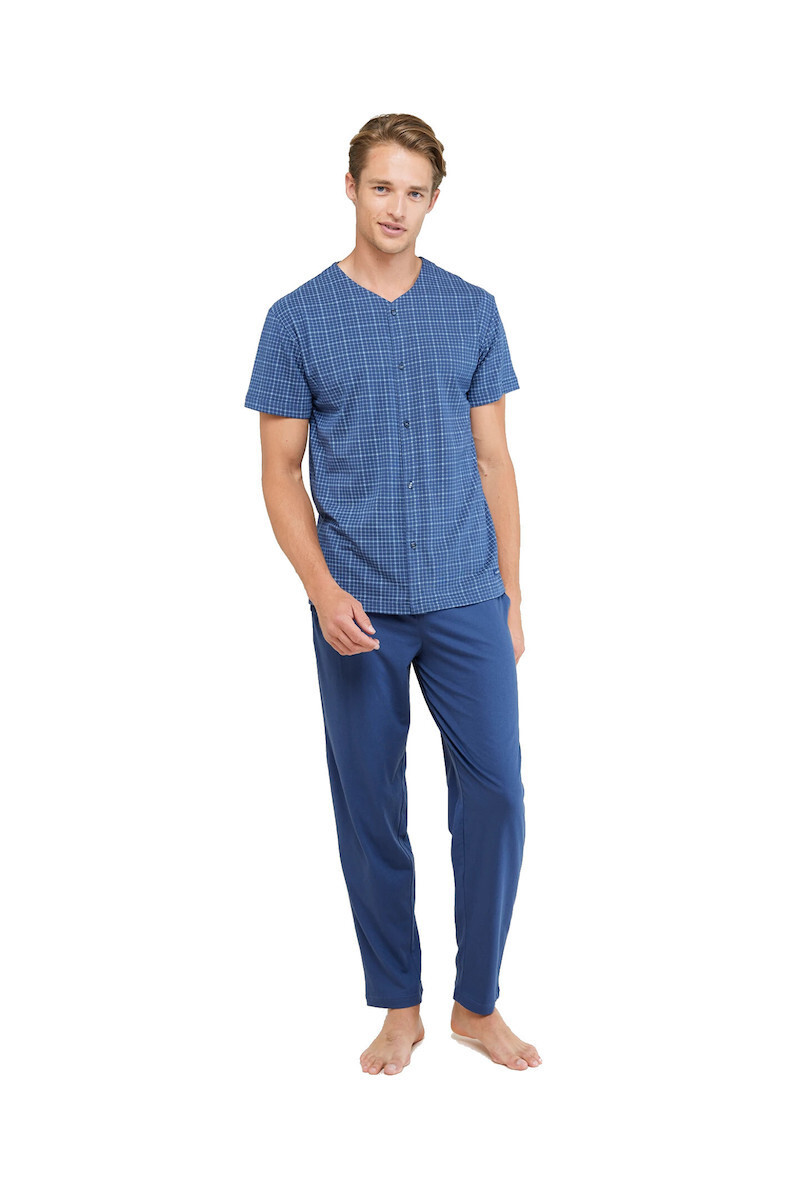 Noidinotte Βαμβακερή Μπλε Κουμπωτή Ανδρική Πιτζάμα.