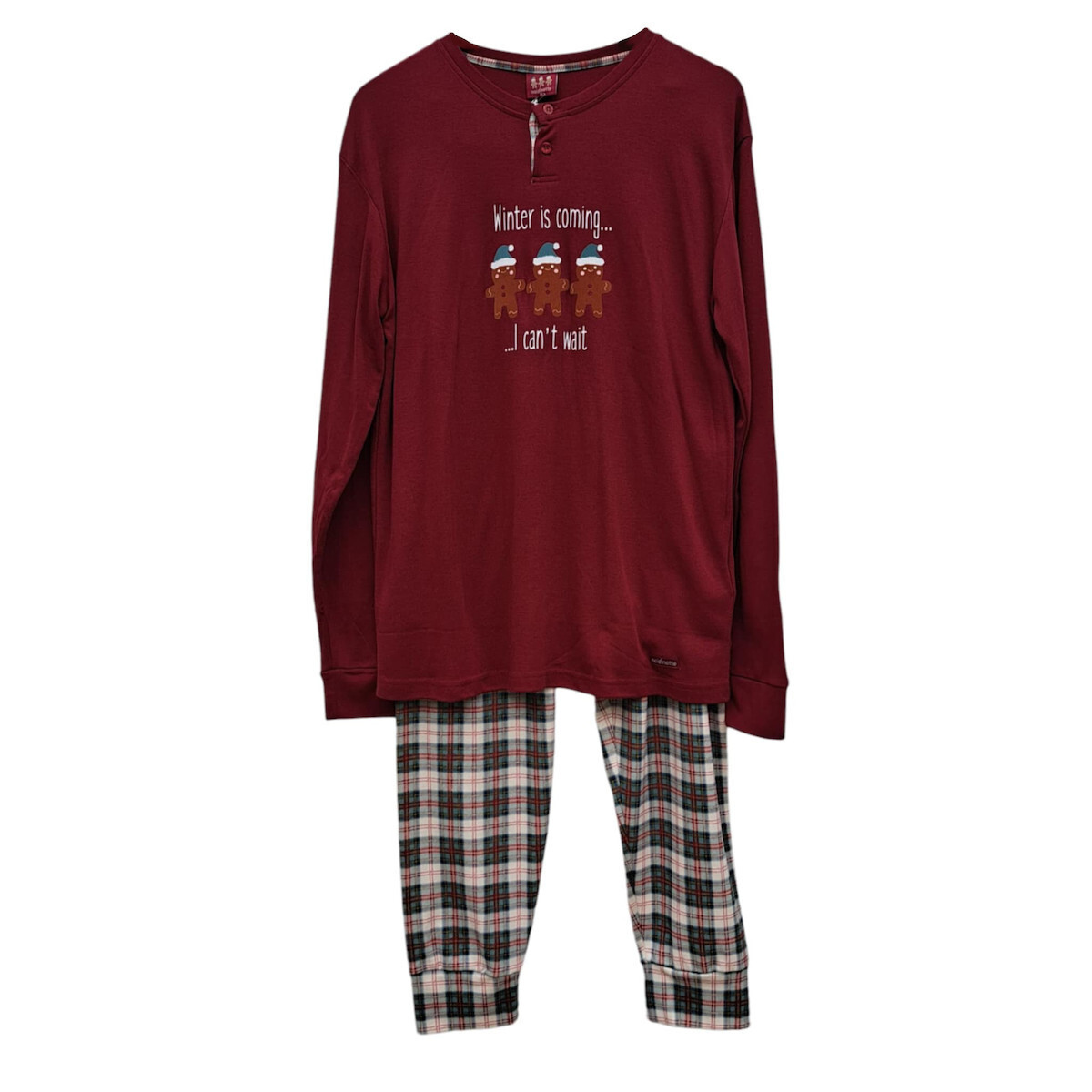 Noidinotte Βαμβακερή Μπορντό/Καρό Ανδρική Πιτζάμα.