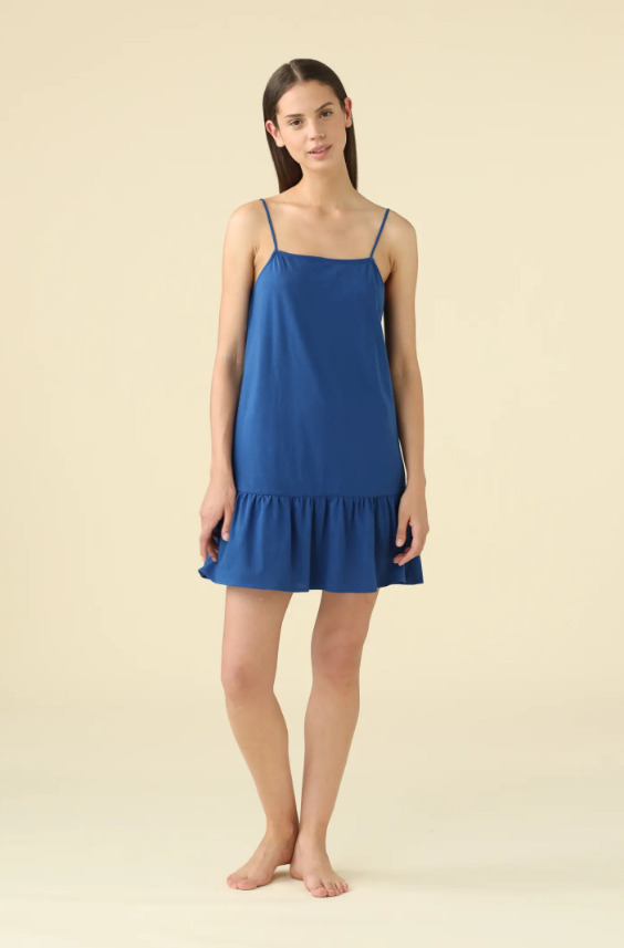 Noidinotte Βαμβακερό Μπλε Γυναικείο Νυχτικό Με Ράντα.