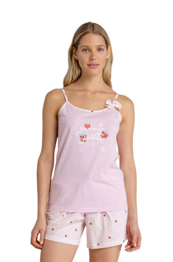 Noidinotte Βαμβακερό Ροζ Babydoll Με Φράουλες.