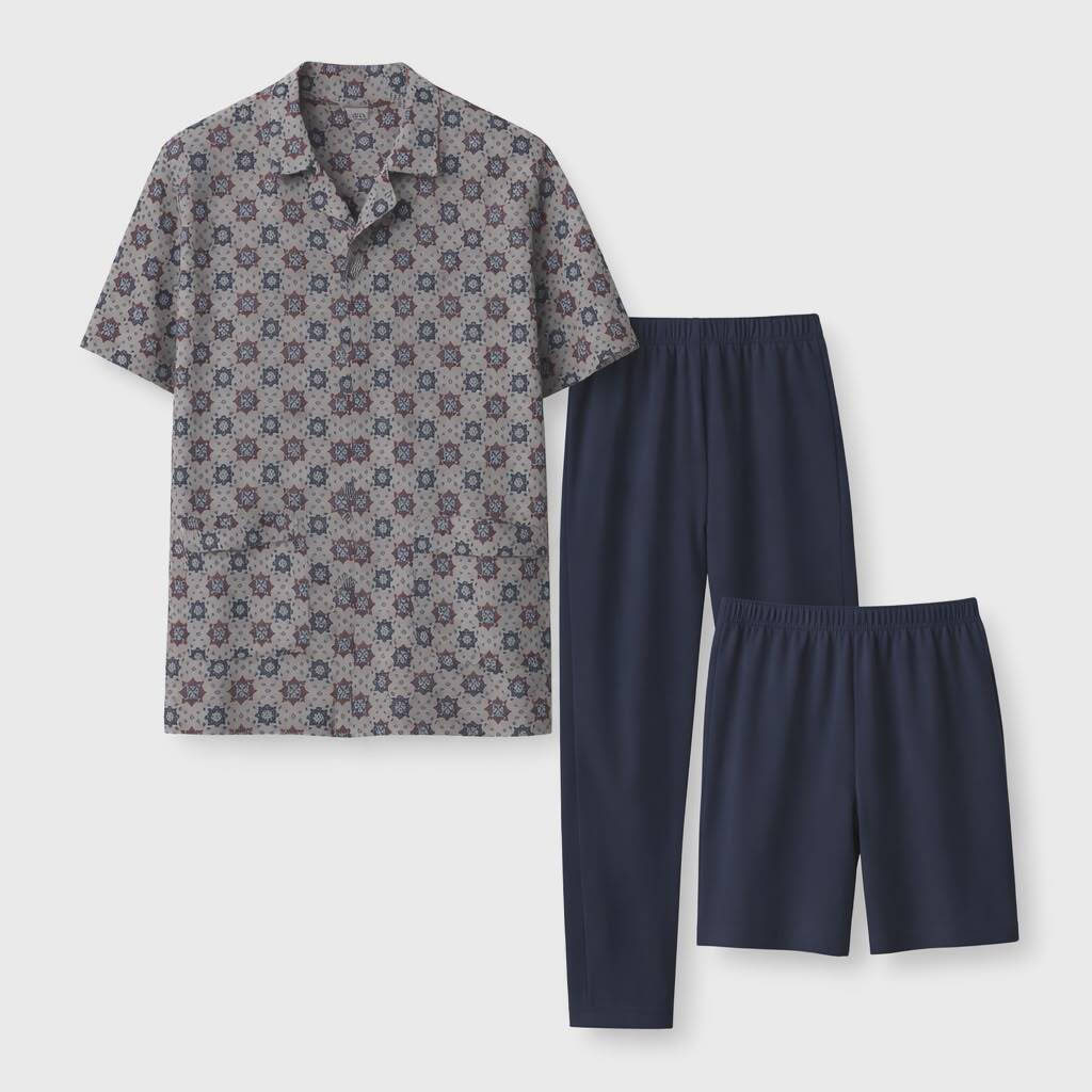 Οδυσσεύ Γκρι/Μπλε Κουμπωτή Πιτζάμα Βαμβακερή Με Μακρύ Παντελόνι & Σορτς.