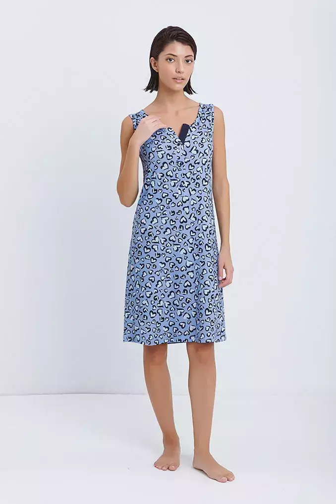 Odyssey Καλοκαιρινό Βαμβακερό Γυναικείο Νυχτικό Μπλε 4228