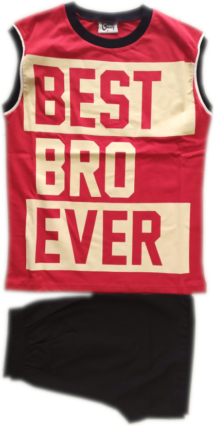 Παιδική αγορίστικη πιτζάμα από 100% βαμβάκι. Κόκκινη αμάνικη μπλούζα με στάμπα. Μαύρο μονόχρωμο σορτς.