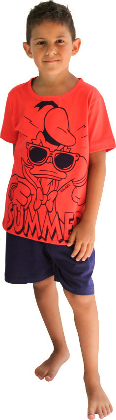 Παιδική αγορίστικη πιτζάμα από 100%βαμβάκι. Κόκκινη μπλούζα με στάμπα. Μπλε σορτς.