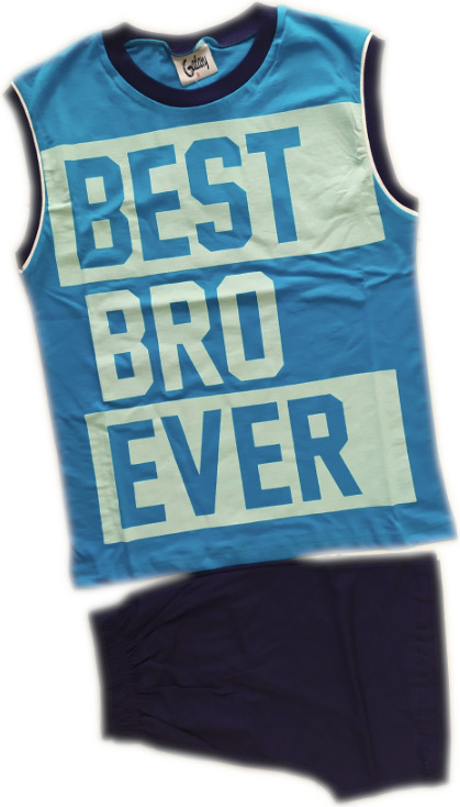 Παιδική αγορίστικη πιτζάμα από 100% βαμβάκι. Τιρκουάζ αμάνικη μπλούζα με στάμπα. Μπλε μονόχρωμο σορτς.