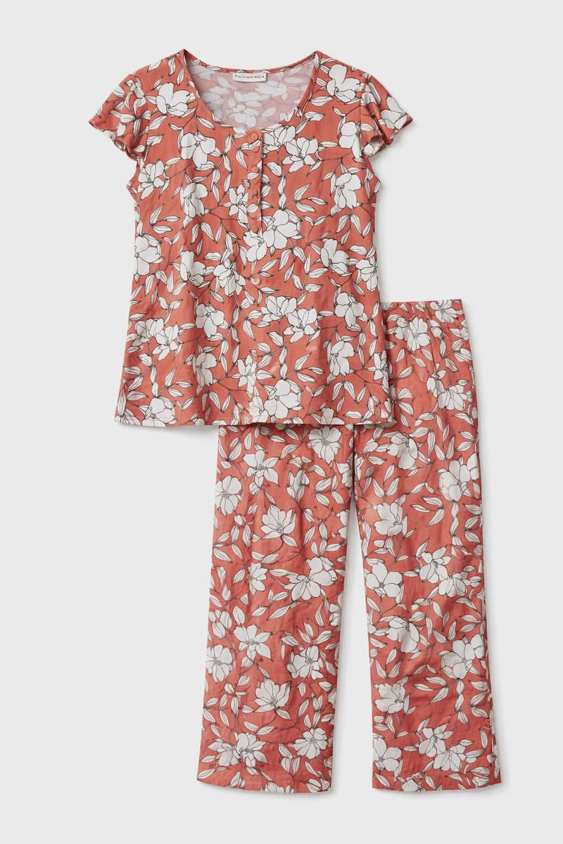 Passion Κεραμιδί Γυναικεία Πιτζάμα Με Κάπρι.