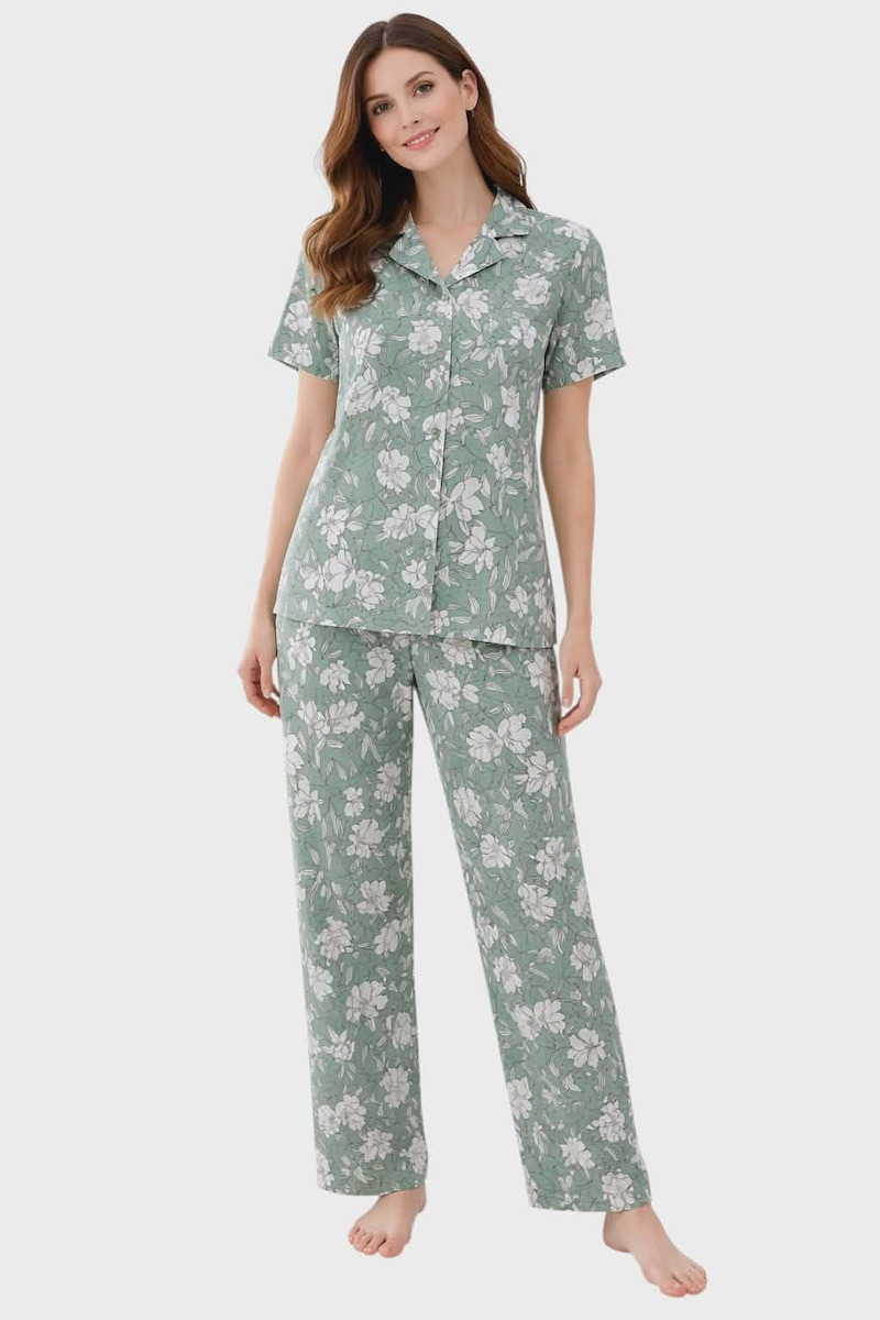 Passion Πράσινη Γυναικεία Πιτζάμα Κουμπωτή Με Μακρύ Παντελόνι.