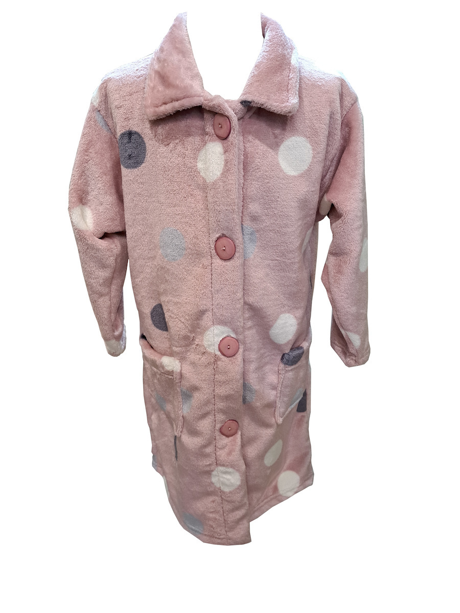 Passion ροζ πουά κουμπωτή φλις παιδική ρόμπα.