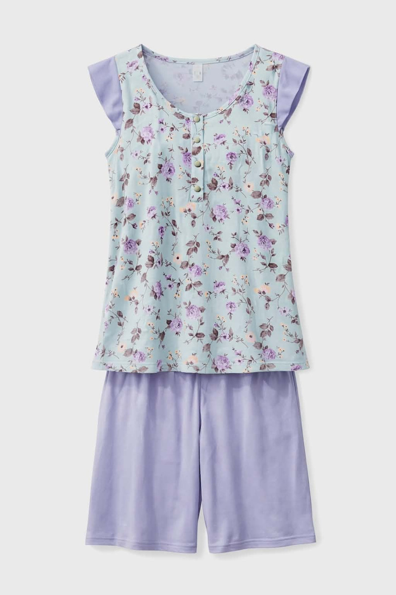 Passion Βαμβακερή Γυναικεία Πιτζάμα Φυστικί/ Λιλά Με Βερμούδα.