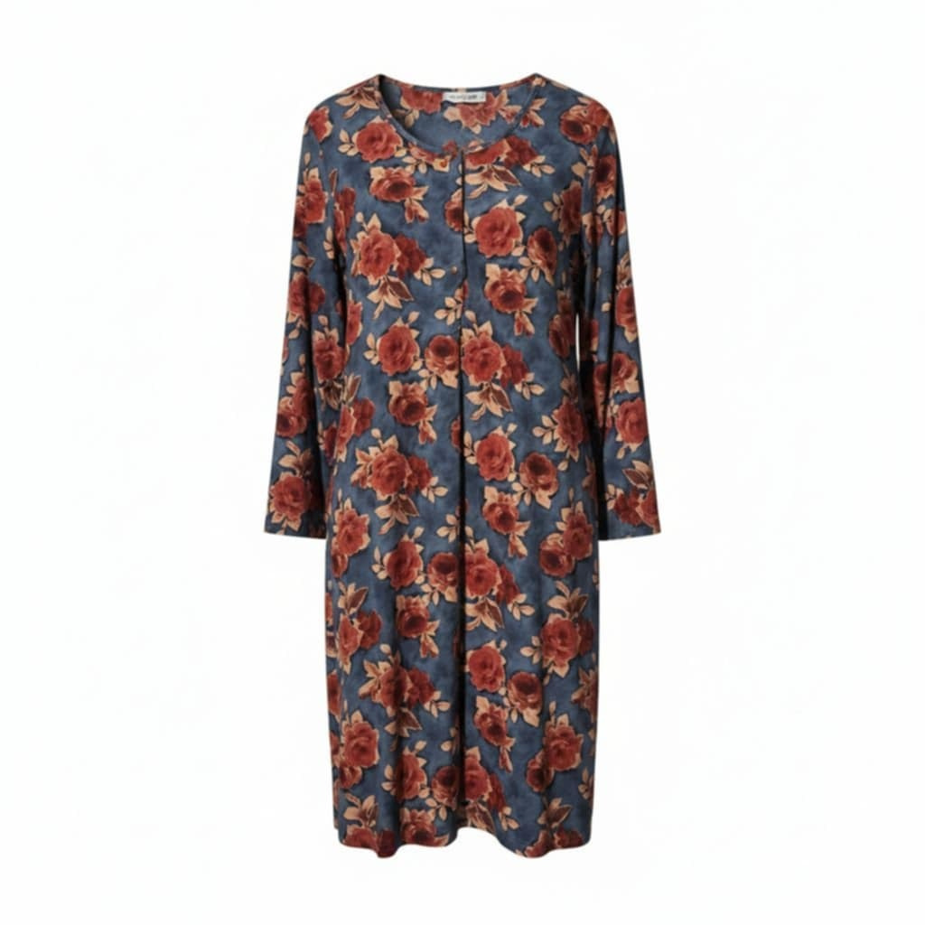 Passion Viscose Ανθρακί Εμπριμέ Γυναικείο Νυχτικό Με 4 Κουμπιά.