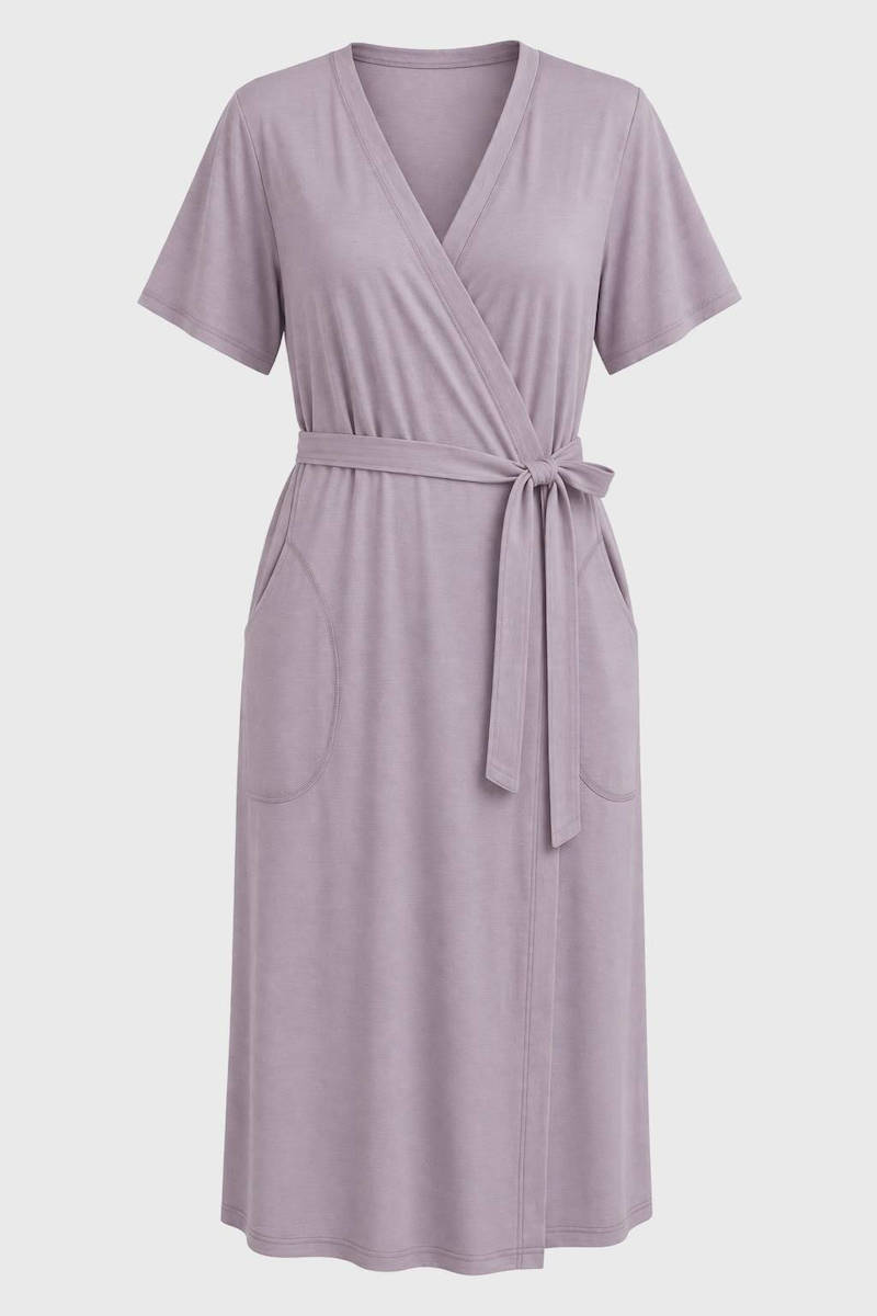 Passion Viscose Σταυρωτή Μωβ Γυναικεία Ρόμπα Κοντομάνικη.