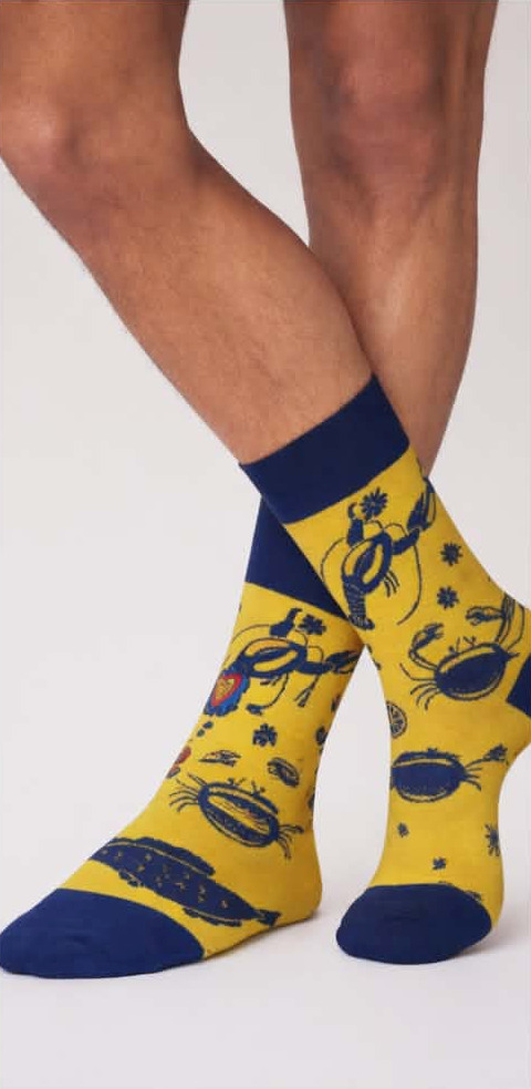 Pournara Βαμβακερές Κίτρινες Ανδρικές Κάλτσες Με Σχέδιο.