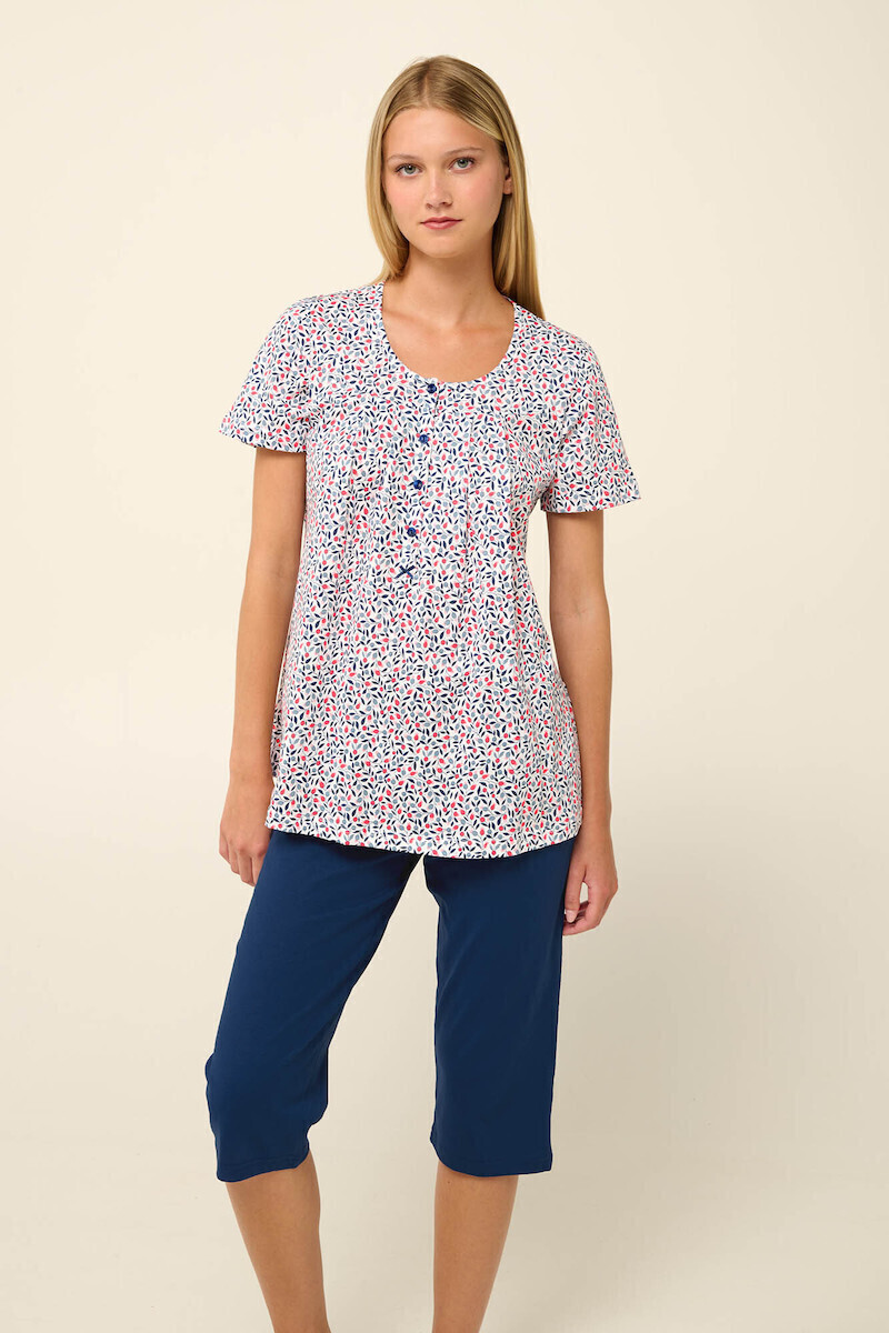 Vamp Καλοκαιρινό Γυναικείο Σετ Πιτζάμας Βαμβακερό Blue Peony 22303