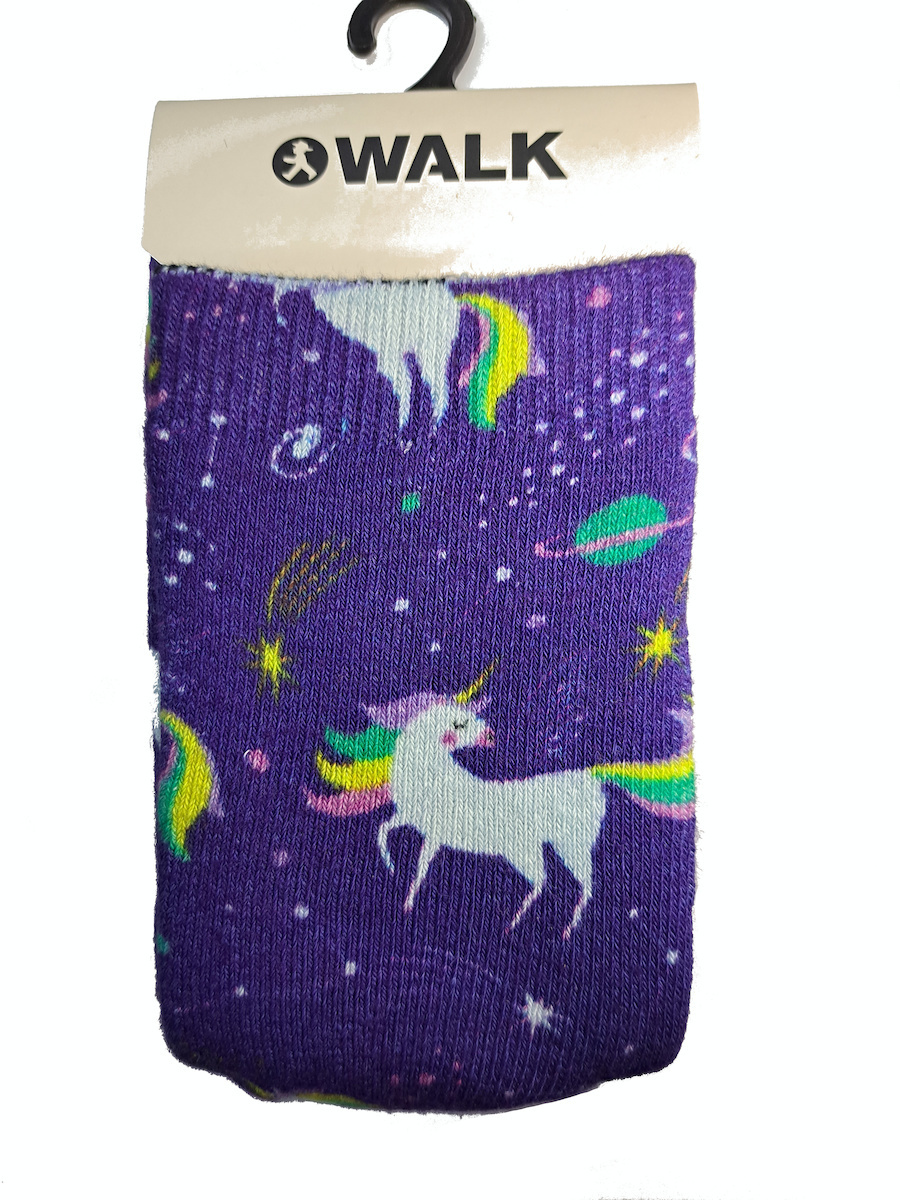 Walk πετσετέ μωβ παιδικές κάλτσες με πατουσάκια σιλικόνης και σχέδιο μονόκερος.