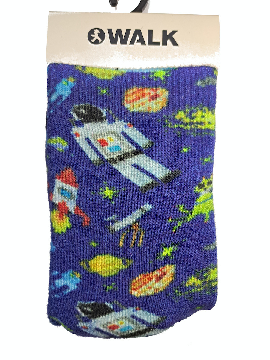 Walk πετσετέ μπλε παιδικές κάλτσες με πατουσάκια σιλικόνης και σχέδιο διάστημα.