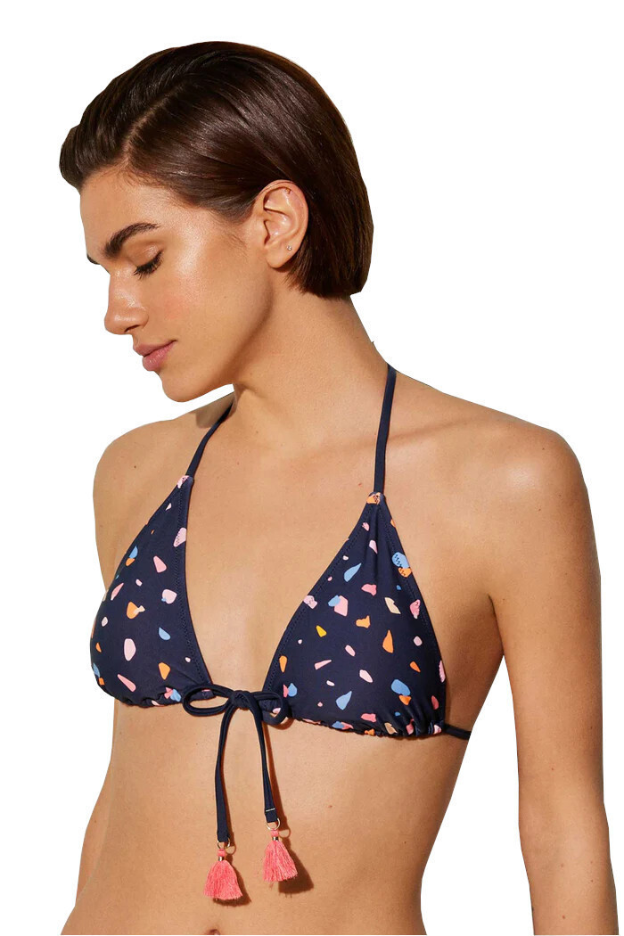 Ysabel Mora Μπλε Εμπριμέ Μαγίο Τρίγωνο Με Φούντες.